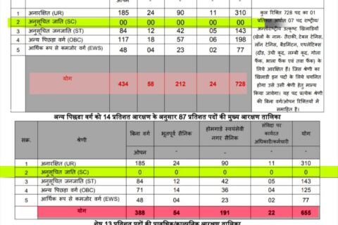 मध्यप्रदेश कर्मचारी चयन मंडल द्वारा जारी वन विभाग एवं जेल विभाग की सीधी भर्ती परीक्षा–2026 के नोटिफिकेशन में अनुसूचित जाति (SC) वर्ग के लिए पदों…