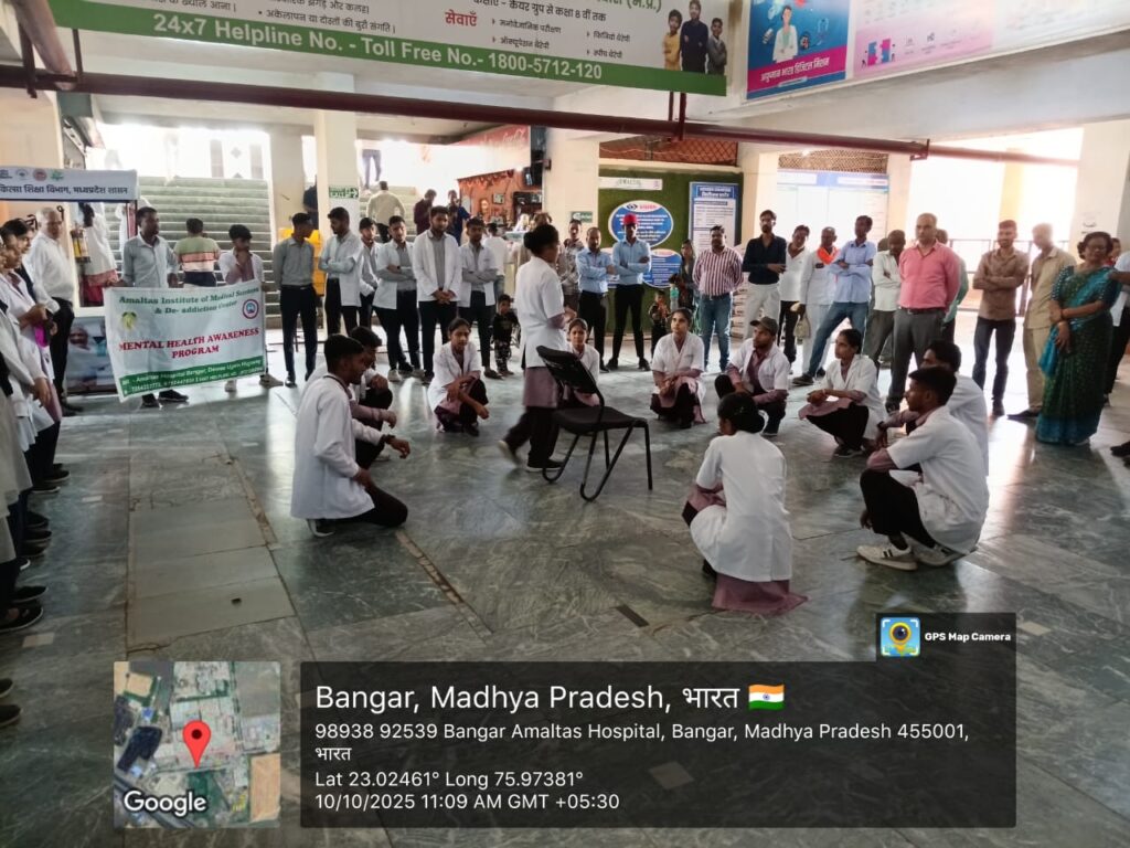 देवास। अमलतास इंस्टीट्यूट ऑफ नर्सिंग साइंसेज, देवास द्वारा विश्व मानसिक स्वास्थ्य दिवस (World Mental Health Day) बड़े उत्साह के साथ मनाया गया। इस वर्ष की थीम थी — “मानसिक स्वास्थ्य एक सार्वभौमिक मानव अधिकार है।”इस अवसर पर अमलतास परिसर में मानसिक स्वास्थ्य जागरूकता रैली का आयोजन किया गया। रैली को अमलतास विश्वविद्यालय के माननीय कुलपति डॉ. शरथचंद्र वानखेडे एवं रजिस्ट्रार श्री संजय रामभोले द्वारा हरी झंडी दिखाकर रवाना किया गया।रैली में बी.एससी. नर्सिंग एवं एम.एससी. नर्सिंग के विद्यार्थियों ने मानसिक स्वास्थ्य के प्रति जागरूकता फैलाने हेतु नारों एवं बैनरों के माध्यम से जनसंदेश दिया।इसके साथ ही, अमलतास नर्सिंग कॉलेज के विद्यार्थियों द्वारा शासकीय चिकित्सालय, देवास (Government Hospital, Dewas) के ओ.पी.डी. क्षेत्र में नुक्कड़ नाटक का आयोजन किया गया। इस नाटक के माध्यम से आमजन को मानसिक बीमारियों के लक्षण पहचानने, सहायता लेने तथा मानसिक रोगों से जुड़ी भ्रांतियों और कलंक को दूर करने के लिए प्रेरित किया गया।