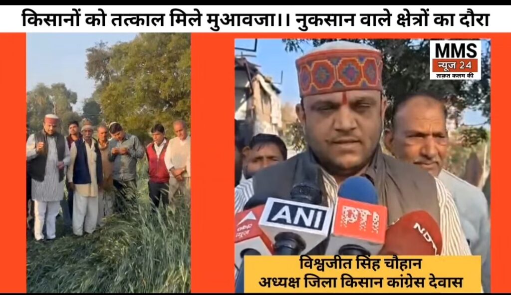 जिला किसान कांग्रेस ने मुख्यमंत्री के नाम कलेक्टर को सौप पत्र,देवास जिले में असमय वर्षा एवं ओलावृष्टि से फसलों को हुए नुकसान पर क्षेत्र का किया दौरा,किसानो को तत्काल राहत एवं मुआवजे की मांग ! जिला किसान कांग्रेस के अध्यक्ष विश्वजीत सिंह चौहान ने बुधवार को पूर्व रात्रि हुई ओलावृष्टि के कारण हुई फसल के
