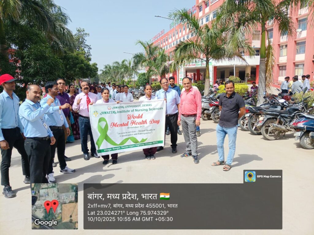 देवास। अमलतास इंस्टीट्यूट ऑफ नर्सिंग साइंसेज, देवास द्वारा विश्व मानसिक स्वास्थ्य दिवस (World Mental Health Day) बड़े उत्साह के साथ मनाया गया। इस वर्ष की थीम थी — “मानसिक स्वास्थ्य एक सार्वभौमिक मानव अधिकार है।”इस अवसर पर अमलतास परिसर में मानसिक स्वास्थ्य जागरूकता रैली का आयोजन किया गया। रैली को अमलतास विश्वविद्यालय के माननीय कुलपति